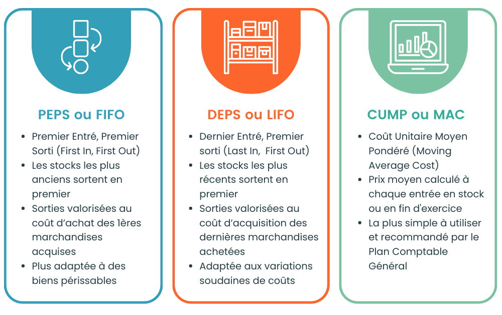 En France, le Plan Comptable Général autorise deux principales méthodes de valorisation des stocks : la méthode PEPS (FIFO) et la méthode du CUMP. Ces méthodes de valorisation des stocks répondent à des logiques différentes.